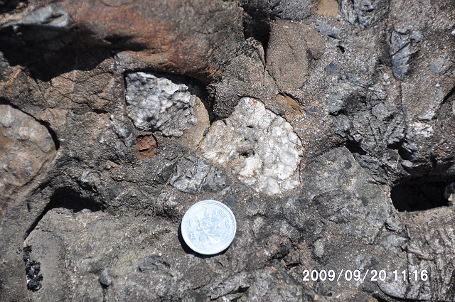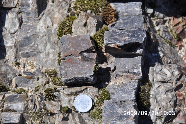 一円玉は直径 2cm。チャートの層厚は約4-5cm。