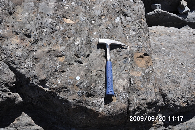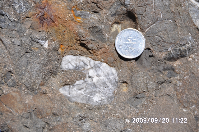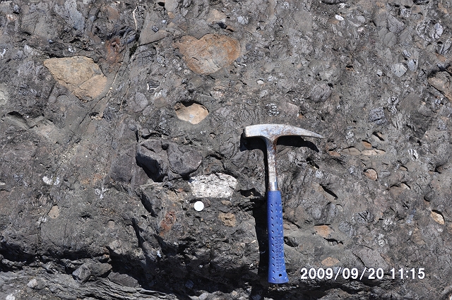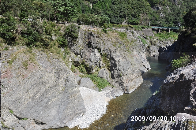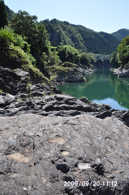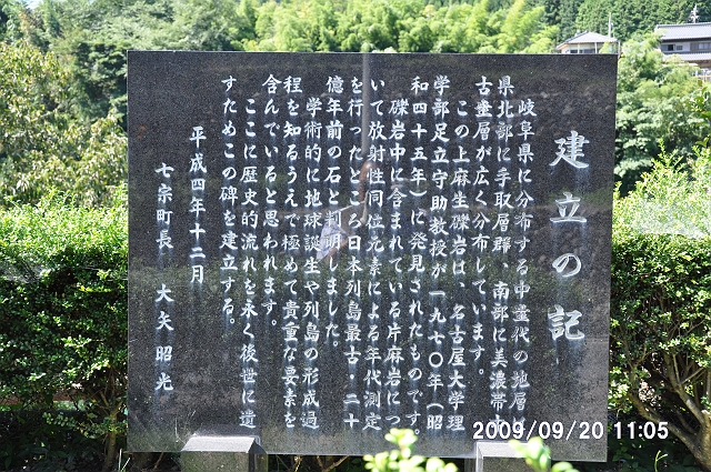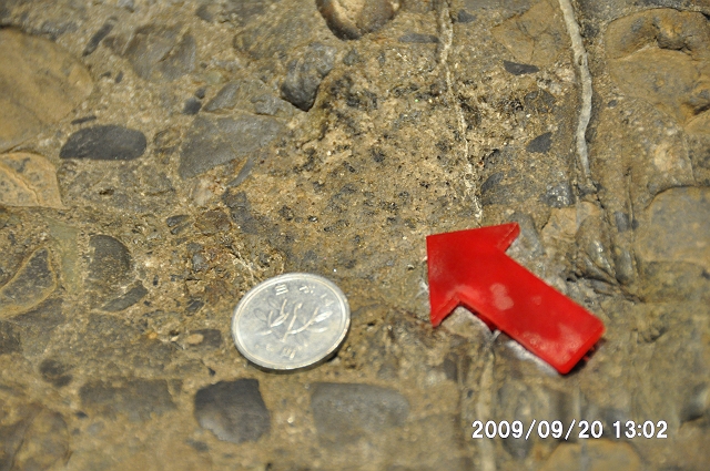 2つ目は、前の現場から2−3km南の、岐阜県七宗町上麻生の「日本最古の岩石を含む礫岩」