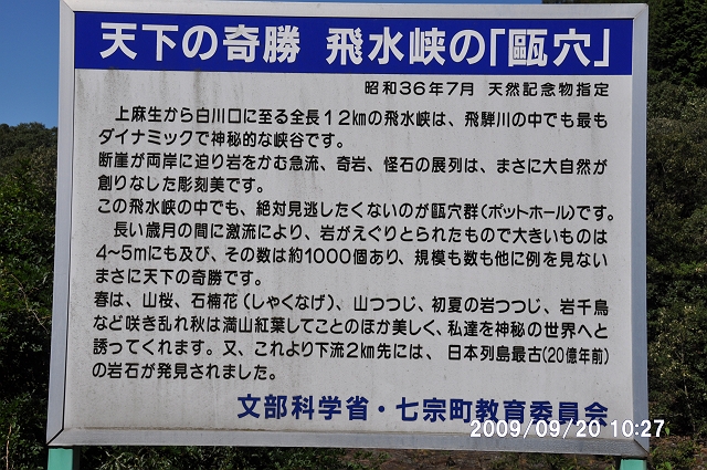 岐阜県を中心に2泊3日で、2日目最初は岐阜県七宋町上麻生・飛水峡のチャート。