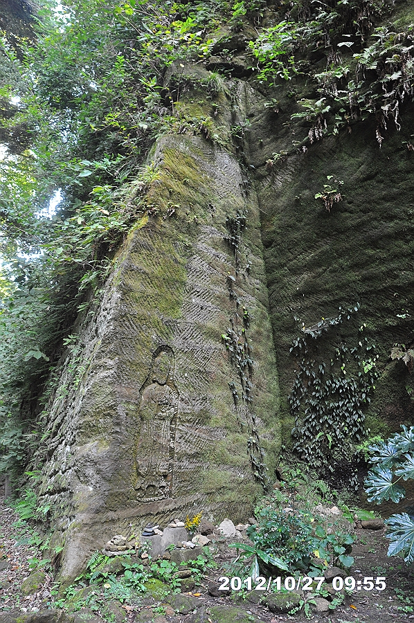 砂岩に人の背丈ほどの仏像が刻まれていた
