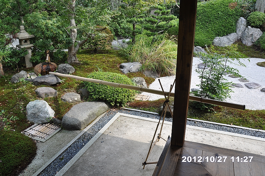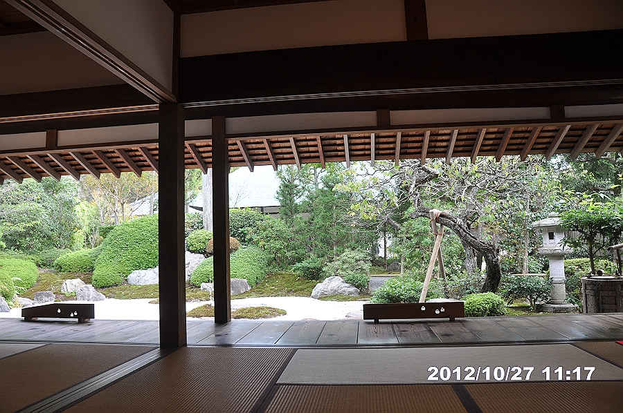 背中は方丈、前にベンチが数箇所置かれ、ゆっくり庭を見ることができる