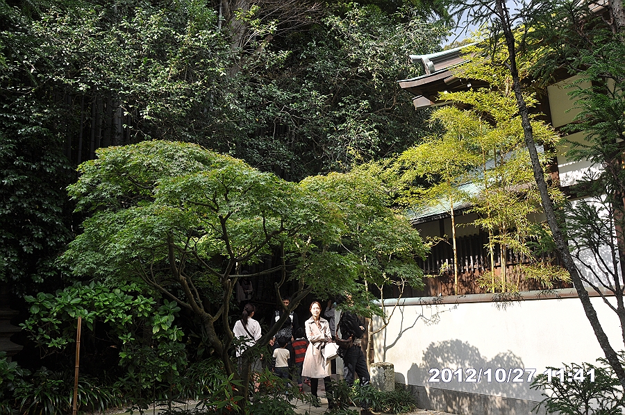 人の沢山いる箇所から、竹の庭に入る