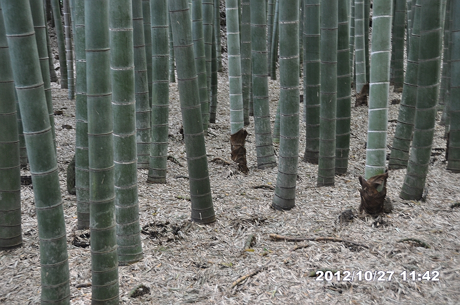 根元に皮があるのは、今年の春、筍から伸びた株か