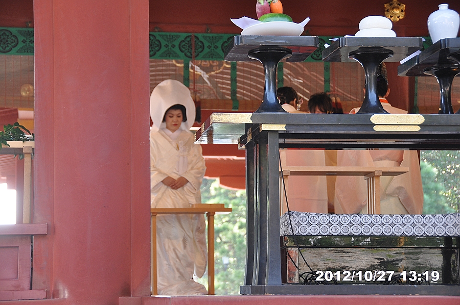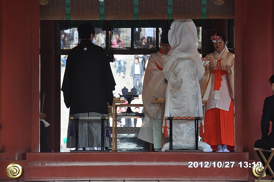 参道を歩き、結婚式に出会う