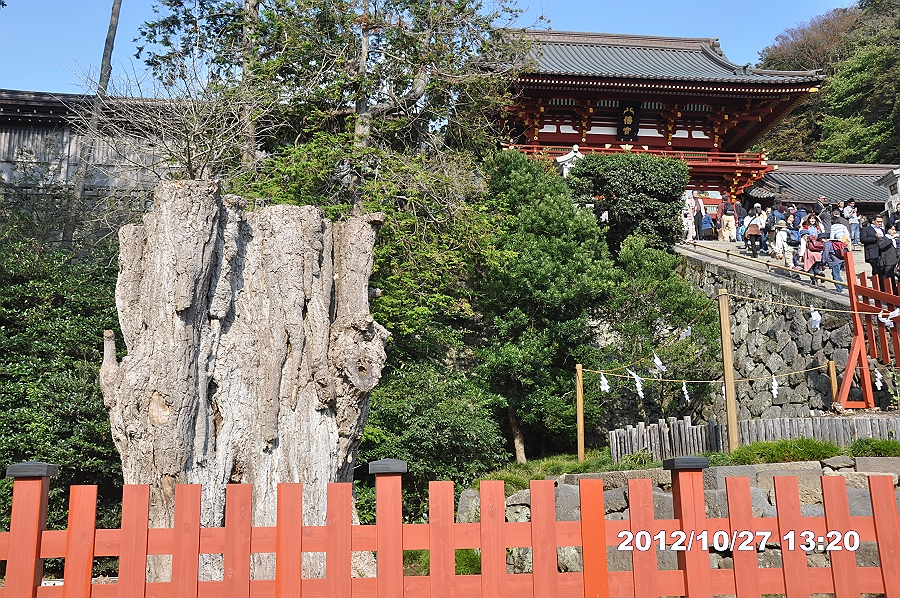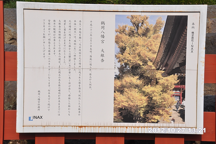 本殿左手前南西側に大イチョウが倒壊して、移植された株
