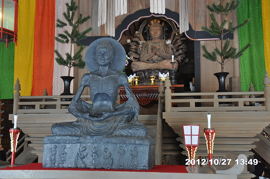 手前のあばら骨の釈迦苦行像は愛知万博のために建立、