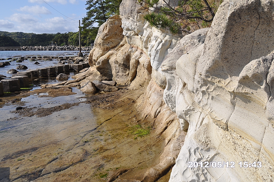 この白っぽい岩石は、珪藻土なのか、砂岩なのか
