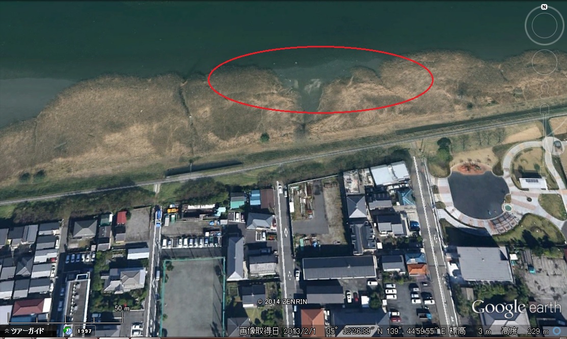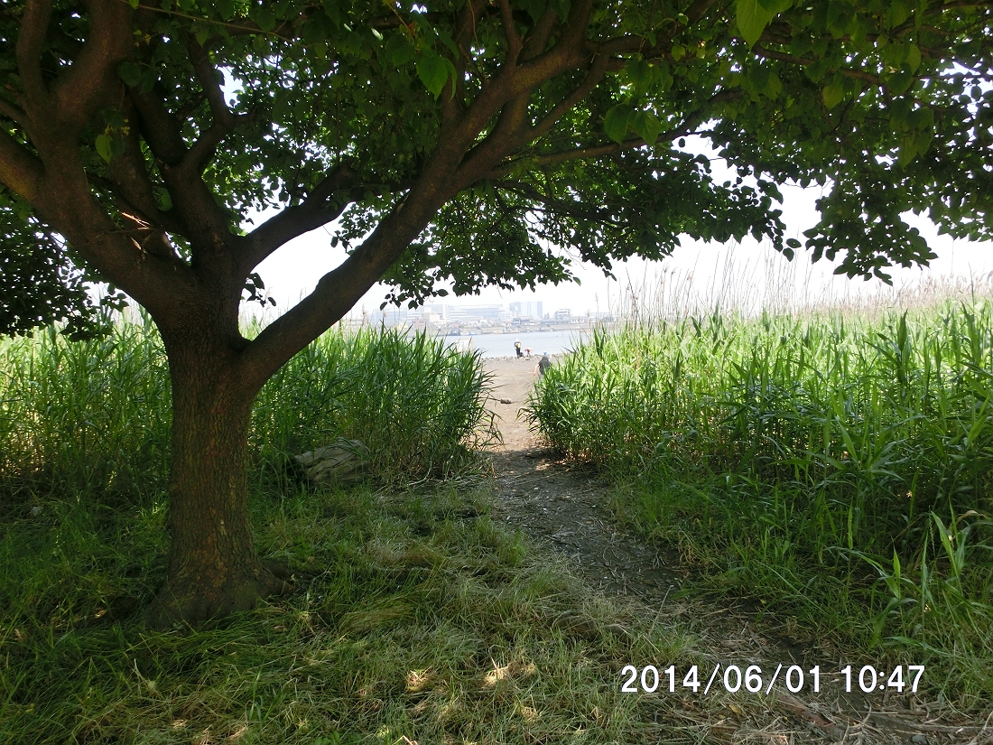 今日の13時頃は干潮で、川側にもっと砂浜が広がっていた