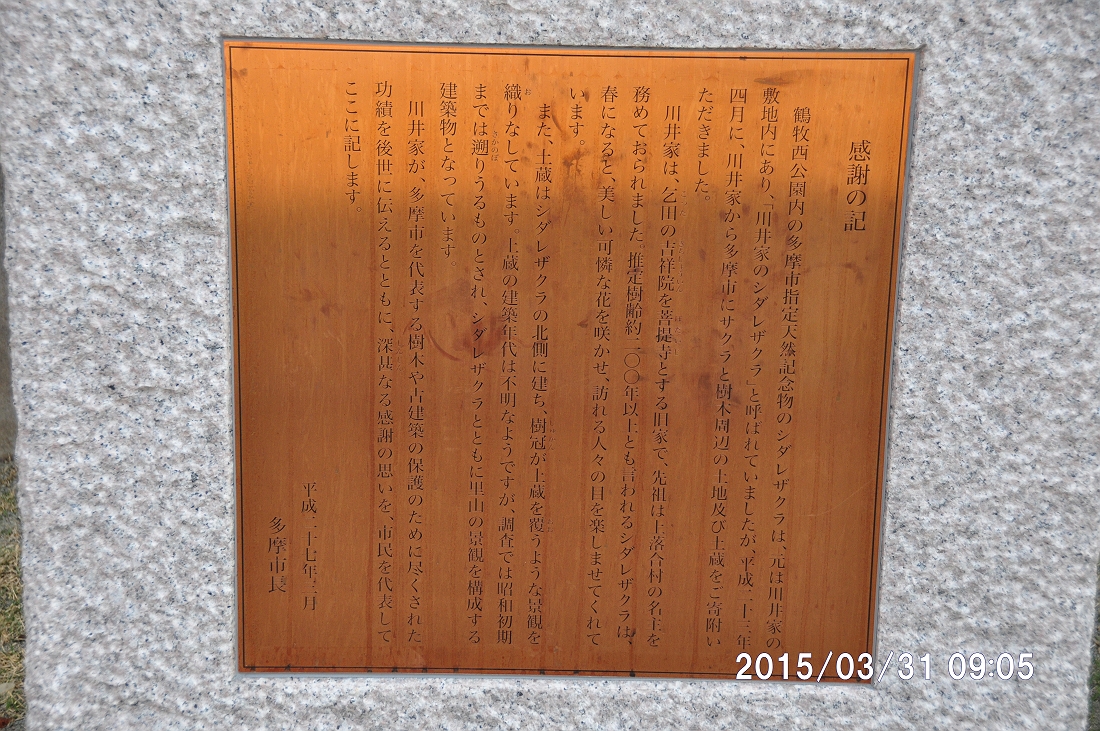 多摩市天然記念物・シダレザクラ(枝垂桜)