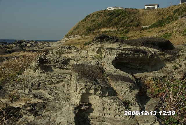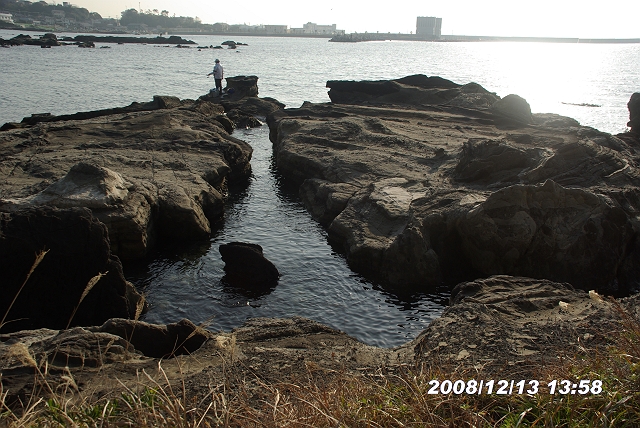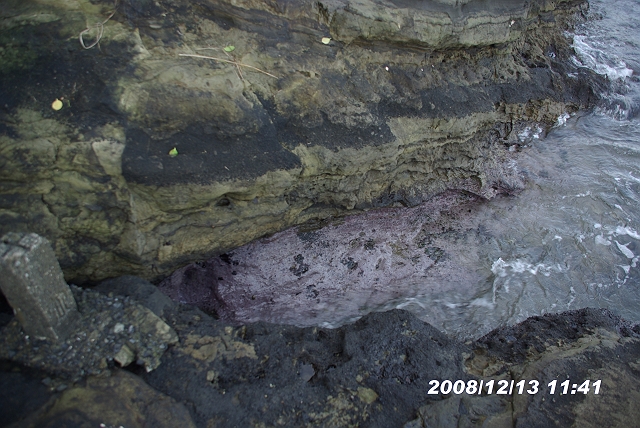 波に洗われる部分は薄紫色になっている