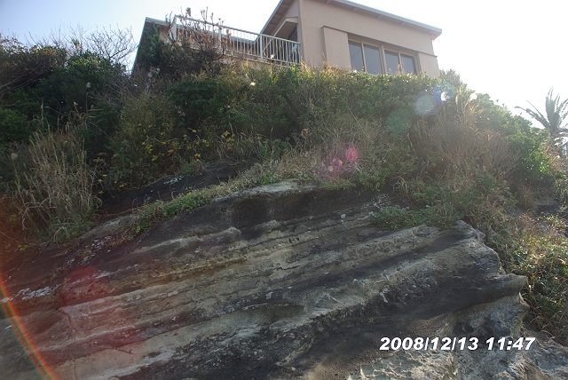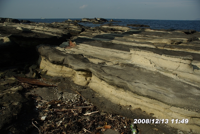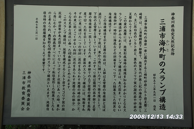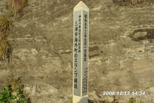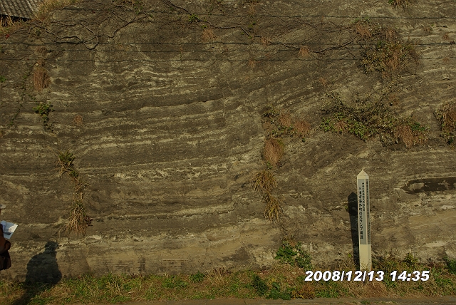 中央右端のほうの地層が立て看板のあった地層だ