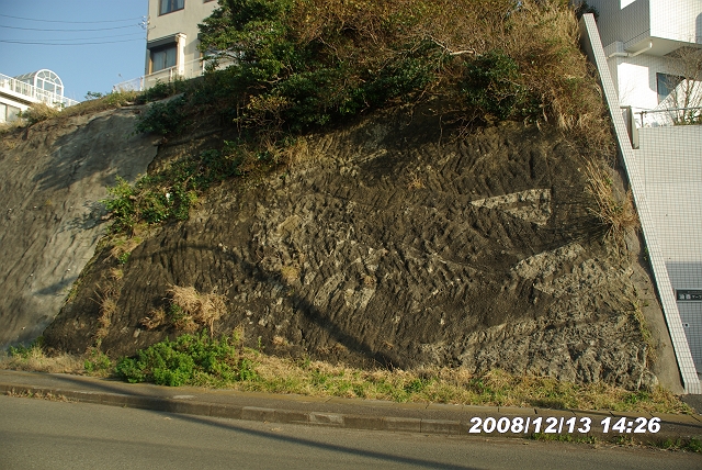 右の方は、断層でずれている