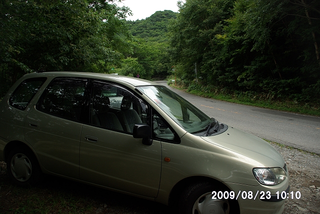 黒檜山の登山口が、フロントガラスの上に見える。