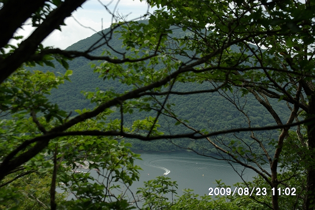 途中から、大沼のモーターボートが見える。