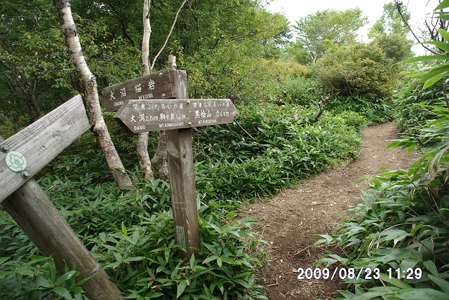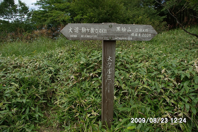大タルミ、黒檜山から 0.8km、駒ケ岳へ 0.4km。