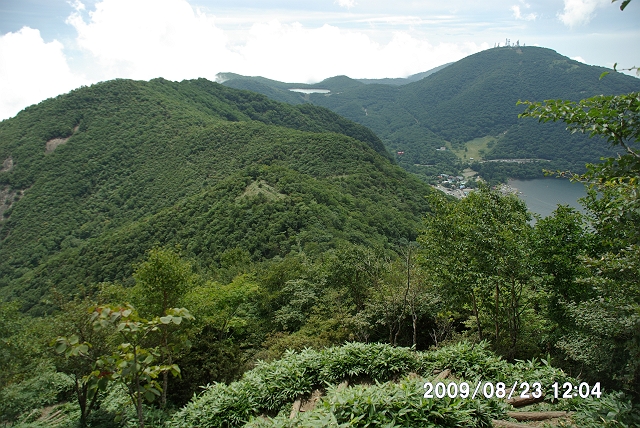 最初の展望、赤城神社を中央に、大沼(おの)。