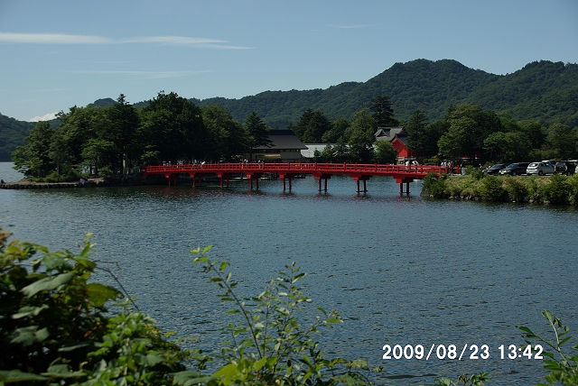 赤木神社には、赤い桁橋が架かっていた。